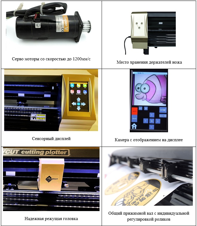 - Серво моторы на осях X и Y со скростью реза в 1200мм/с (к примеру у плоттеров на шаговых моторах скорость не превышает 800мм/с)