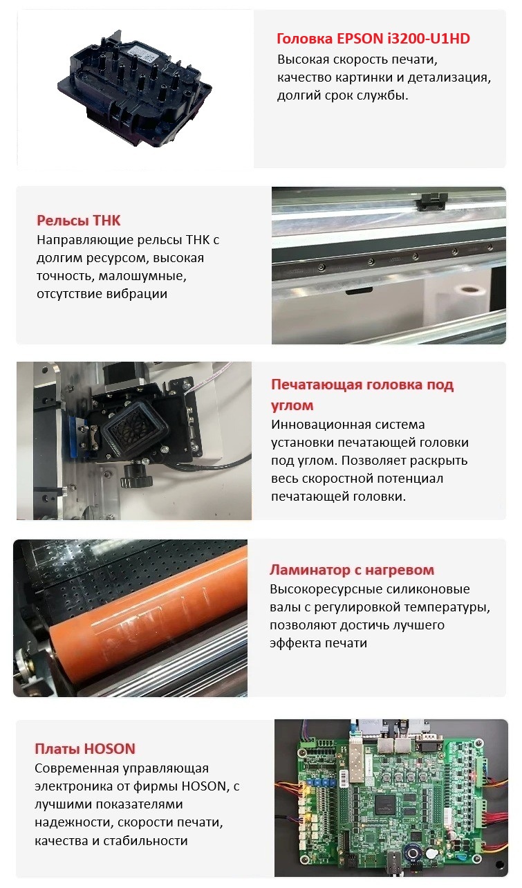 - Оснащение Японской печатной головкой с изменяемой каплей Epson i3200-U1HD
