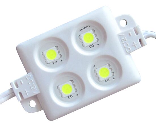 Светодиодный модуль в корпусе АБС-пластик+алюминиевая плата, защита IP67, тип: Epistar, питание 12В, световой поток 100-120Лм, угол рассеивания 120°, габариты модуля 35х28x6мм.
