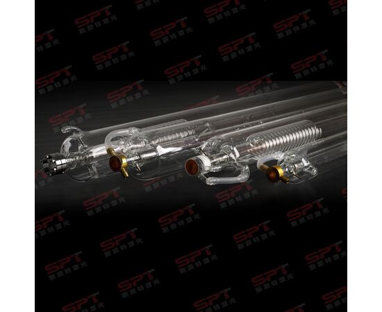 Лазерные трубки SPT проходят тщательный контроль качества, на видео и фото тестирования этих трубок, видно что значение мощности на момент тестирования, даже выше заявленной, это значение фиксируется на этикетке каждой трубки. Трубки малой мощности до 80W включительно оснащены металлическими наконечниками с водяным охлаждением. Также стоит отметить что высоковольтные провода на лазерных трубках SPT монтируются уже на заводе, что обезопасит конечных пользователей при установке новой лазерной трубки в станок, теперь не нужно беспокоиться о том, как прикрепить провода к контактным штырям, скруткой ли, или пайкой, не нужно беспокоиться о возможном перегреве контактных штырей при пайке и разгерметизации трубки, просто установите трубку в держатели и соедините между собой высоковольтные провода станка и трубки.