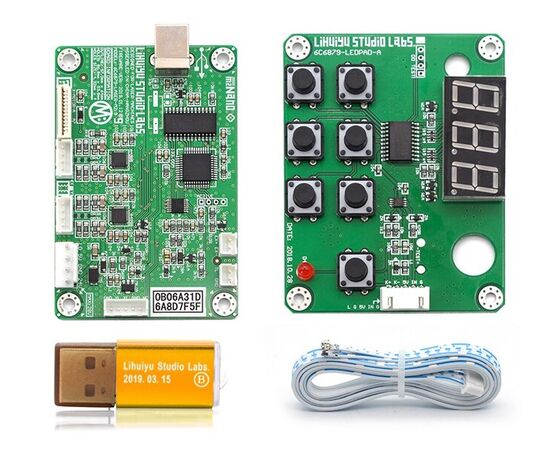Контроллер для лазерного гравера M2 NANO начального уровня. Он обрабатывает загруженные файлы, управляет двигателями, периферийными устройствами. USB кабель подключает его к персональному компьютеру (ноутбуку).